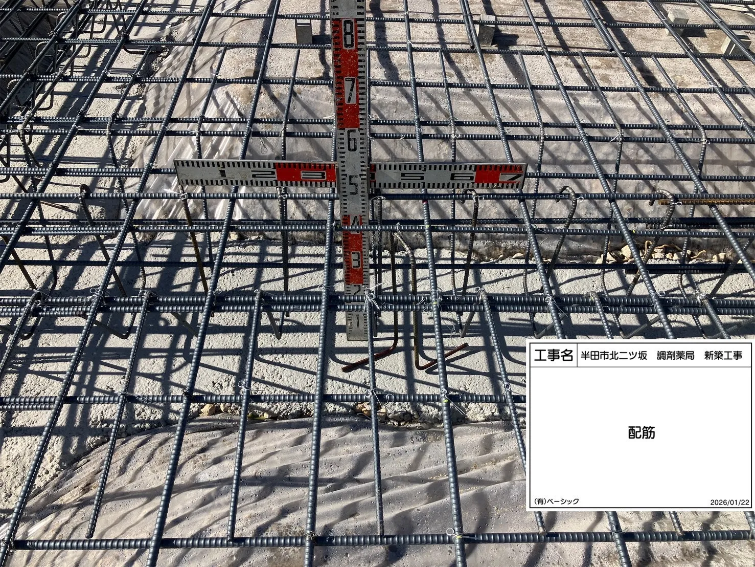 基礎配筋 2026/02/13 【半田薬局】 地盤調査以外のお仕事もお任せください。 是非、下記までお問い合わせをお待ちしています! +++++GROUNDTEC++++++++++++++++++ 株式会社グランドテック 〒459-8001 愛知県名古屋市緑区大高町字西森前41-5 電話番号 : 052-887-7393 ++++++++++++++++++GROUNDTEC+++++